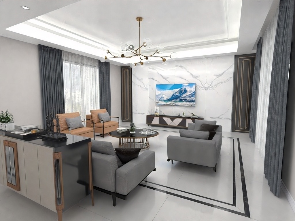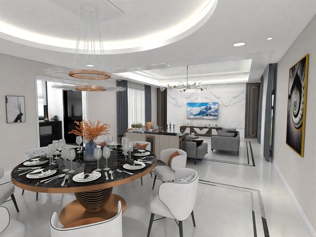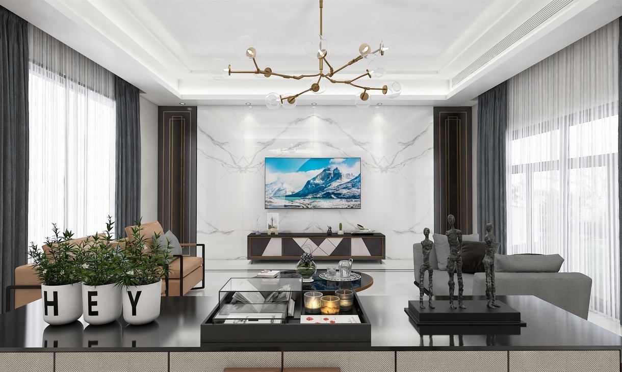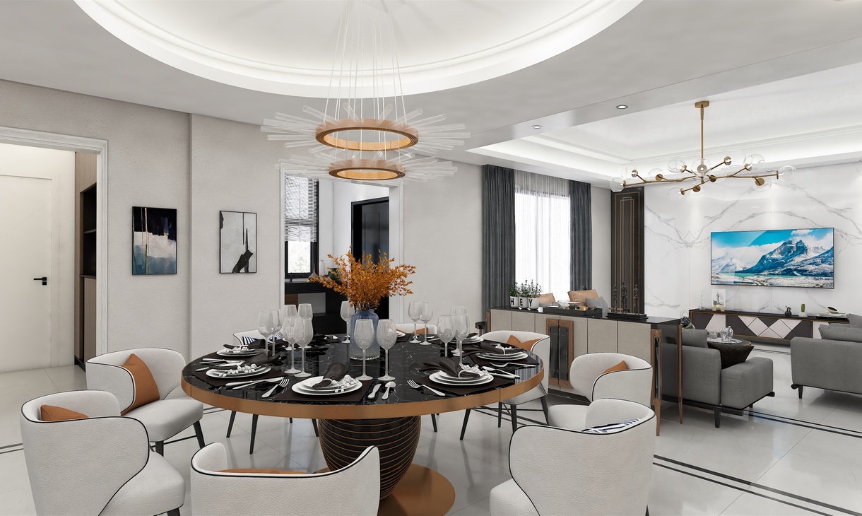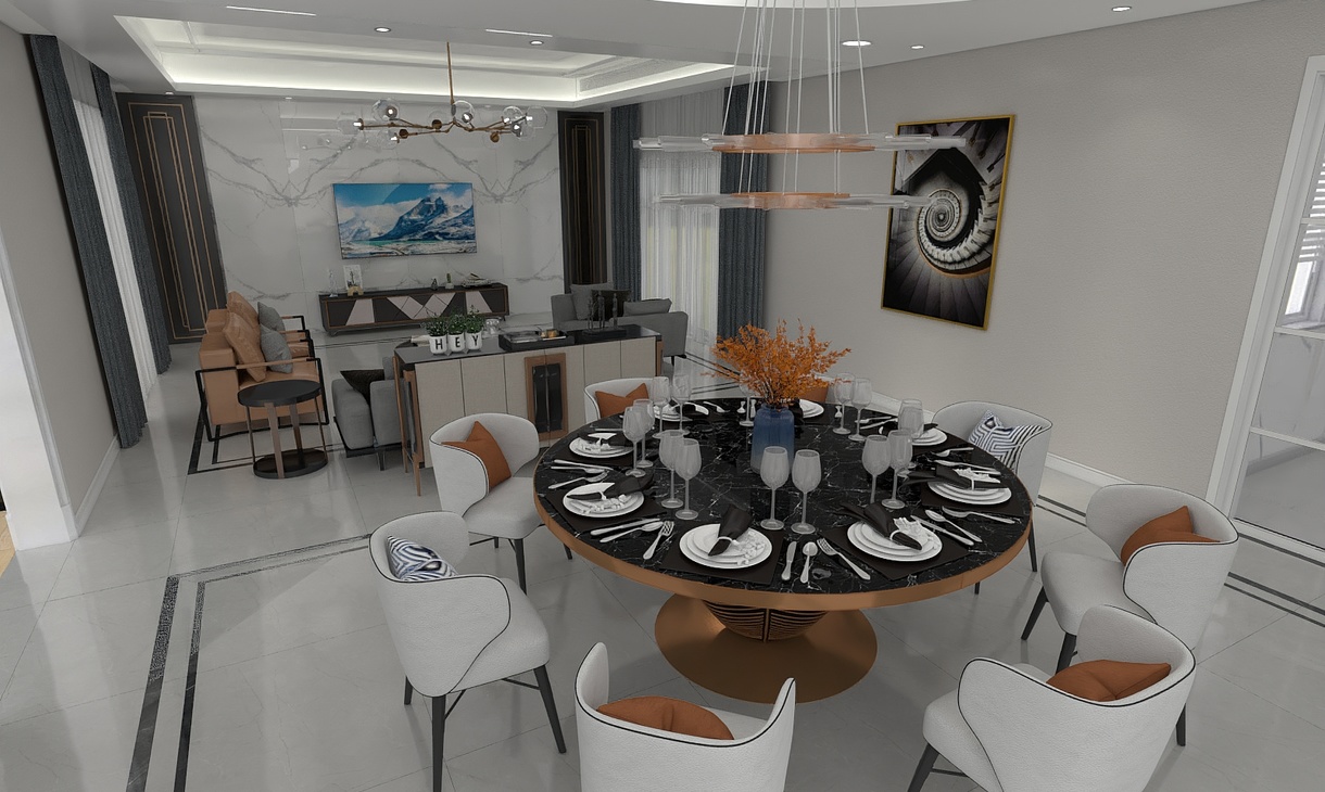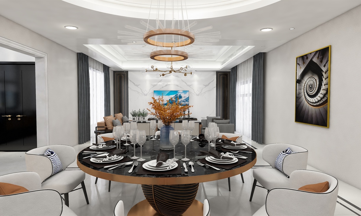 每個空間至少2張效果圖+1張全案全景圖展示,方案描述完整,所有空間需命名。