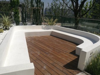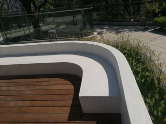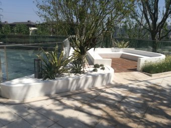 設(shè)計(jì)師對(duì)水磨石材料精心選擇,讓水磨石后期的呈現(xiàn)讓人眼前一亮。整體無(wú)縫的水磨石坐凳、花池,搭配著旁邊的植物,仿佛讓它也有了生機(jī)。