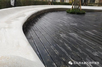木地板、水磨石、兩邊修剪整齊的植被。在傍晚,坐在凳上感受微風(fēng)拂面、落英繽紛。讓“空山新雨后,天氣晚來秋。明月松間照,清泉石上流”“羊腸小道,曲徑通幽”不再只是人們的美好聯(lián)想,而是切切實(shí)實(shí)的感官體會,水磨石它做到了。