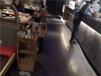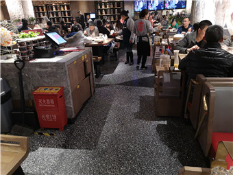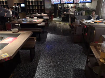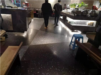 根據(jù)客戶要求,我們的施工師傅為其打造的是與以往不同風(fēng)格的拼接設(shè)計,黑水泥與白石子的混搭拼接,展現(xiàn)了麻神辣將火鍋店與傳統(tǒng)火鍋店的與眾不同,而且我們的水磨石經(jīng)過一系列的拋光打磨工序之后相比傳統(tǒng)地磚更加防油防滲和防滑的效果,火鍋店難免油漬滿地,但我們的水磨石就免除了這方面的煩惱,節(jié)省了人力財力,一勞永逸。