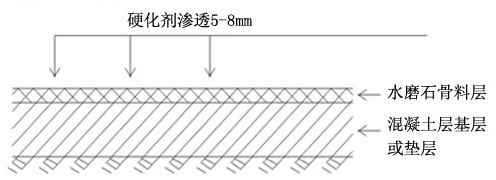 | 百石亮水磨石鋼化地坪結構圖→ | 百石亮水磨石地坪翻新滲透原理剖面圖 |