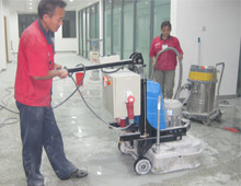 3、地坪干燥:確保滲透劑與鋼化劑充分磨壓到混凝土毛細孔,利于聚硅層形成。