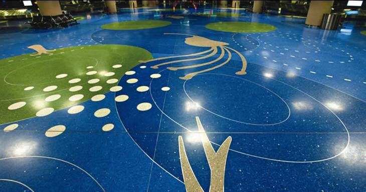 藝術地坪的用途相當廣泛,它可應用于市政、城建、商業、住宅小區及景觀等各種地面和商業路面,甚至包括游泳池、廣場、人行道、行車道、游樂場、地鐵站臺、停車場等等。甚至不少著名賓館、建筑大樓的出入口、主題餐廳、屋頂花園等