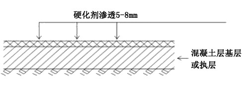 | 百石亮混凝土鋼化地坪結構圖 | 百石亮混凝土鋼化地坪滲透滲透原理剖面圖 |