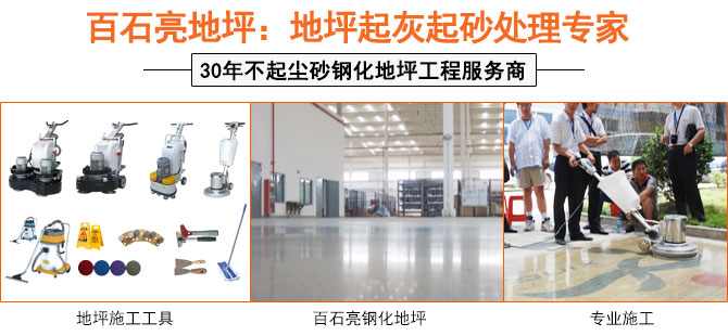 百石亮地坪為工業、倉庫、工廠、車庫、廠房、超市、停車場、實驗室、物流等各種場合提供混凝土鋼化地坪、耐磨鋼化地坪、混凝土耐磨地坪、地坪硬化處理解決方案,讓您的地面永不再起砂、起塵,徹底解決您的起砂、起灰、起塵煩惱!